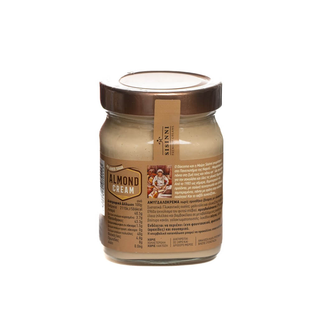 Απαλή αμυγδαλόκρεμα SISINNI με Stevia. Πλούσια γεύση, χωρίς ζάχαρη – ιδανική για υγιεινή απόλαυση.